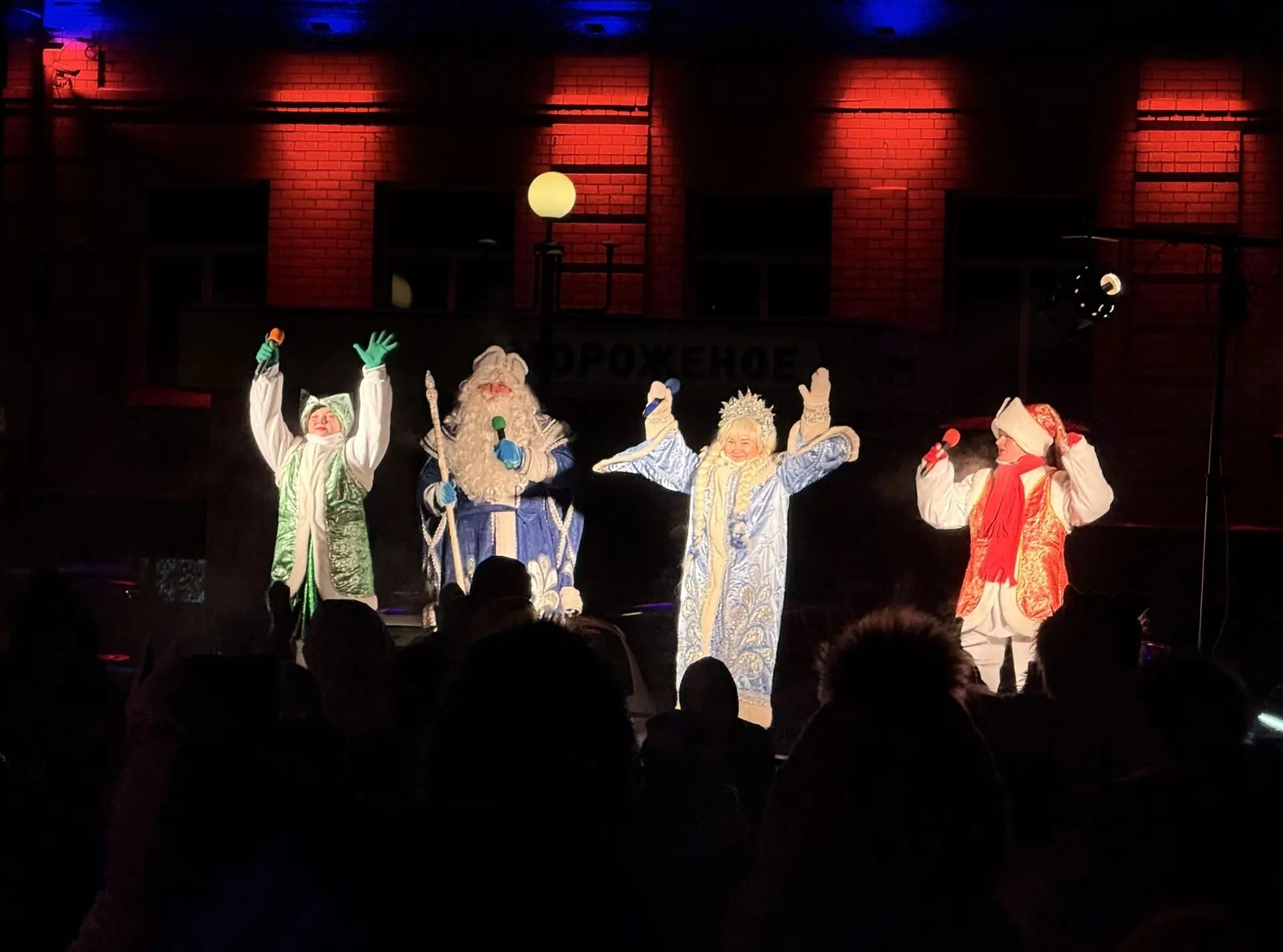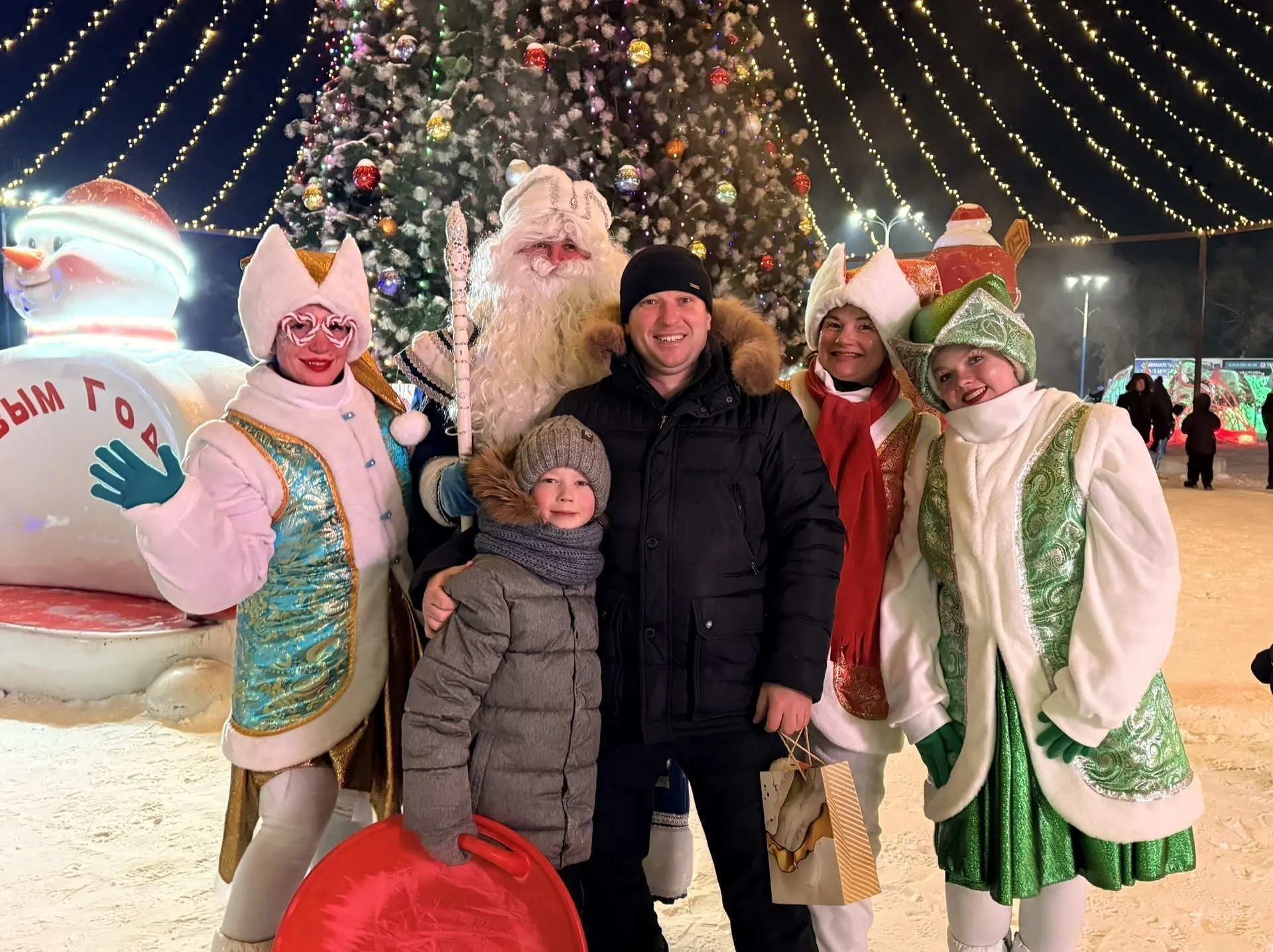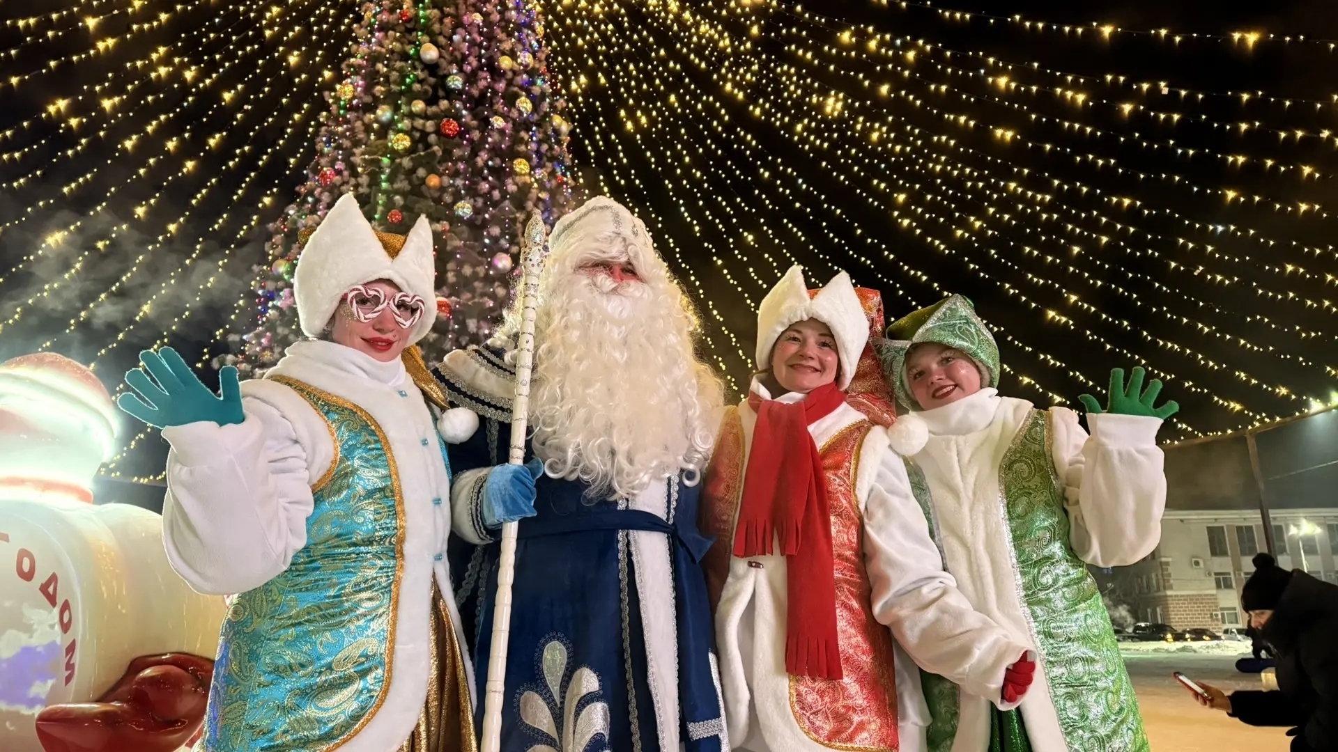В финале мероприятия с Дедом Морозом и Снегурочкой зажгли огоньки на главной ёлке Белогорска и завели вокруг неё большой хоровод.